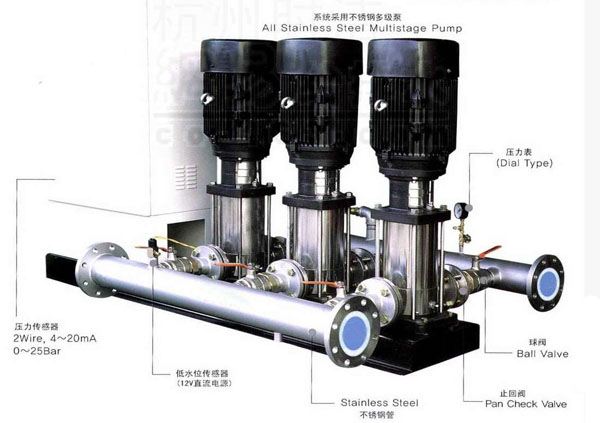 運用當今最先進的微電腦控制技術(shù),將變頻調(diào)速器與電機水泵組合而成的機電一體化高科技節(jié)能供水裝置。變頻恒壓供水設(shè)備以水泵出水端水壓(或用戶用水流量)為設(shè)定參數(shù),通過微機自動控制變頻器的輸出頻率從而調(diào)節(jié)水泵電機的轉(zhuǎn)速,實現(xiàn)用戶管網(wǎng)水壓的閉環(huán)調(diào)節(jié),使供水系統(tǒng)自動恒穩(wěn)于設(shè)定的壓力值。