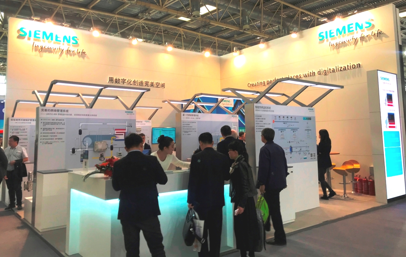 2019年5月6日至5月8日,西門子以“用數(shù)字化創(chuàng)造完美空間”為主題,攜冷凝鍋爐解決方案參展中國國際供熱通風空調(diào)、衛(wèi)浴及舒適家居系統(tǒng)展覽會(中國供熱展)。在展會上,西門子首次展示了3MW零壓閥組并在中國全新發(fā)布了AVS74中文圖文操作界面。此外,還展示了輕型商用冷凝鍋爐管理系統(tǒng)、中大型冷凝鍋爐管理系統(tǒng)、前混型燃氣閥組、后混型燃氣閥組、完善的燃燒管理系統(tǒng)、新一代燃燒管理系統(tǒng)、智能熱網(wǎng)監(jiān)控系統(tǒng)和西門子家庭采暖控制產(chǎn)品。